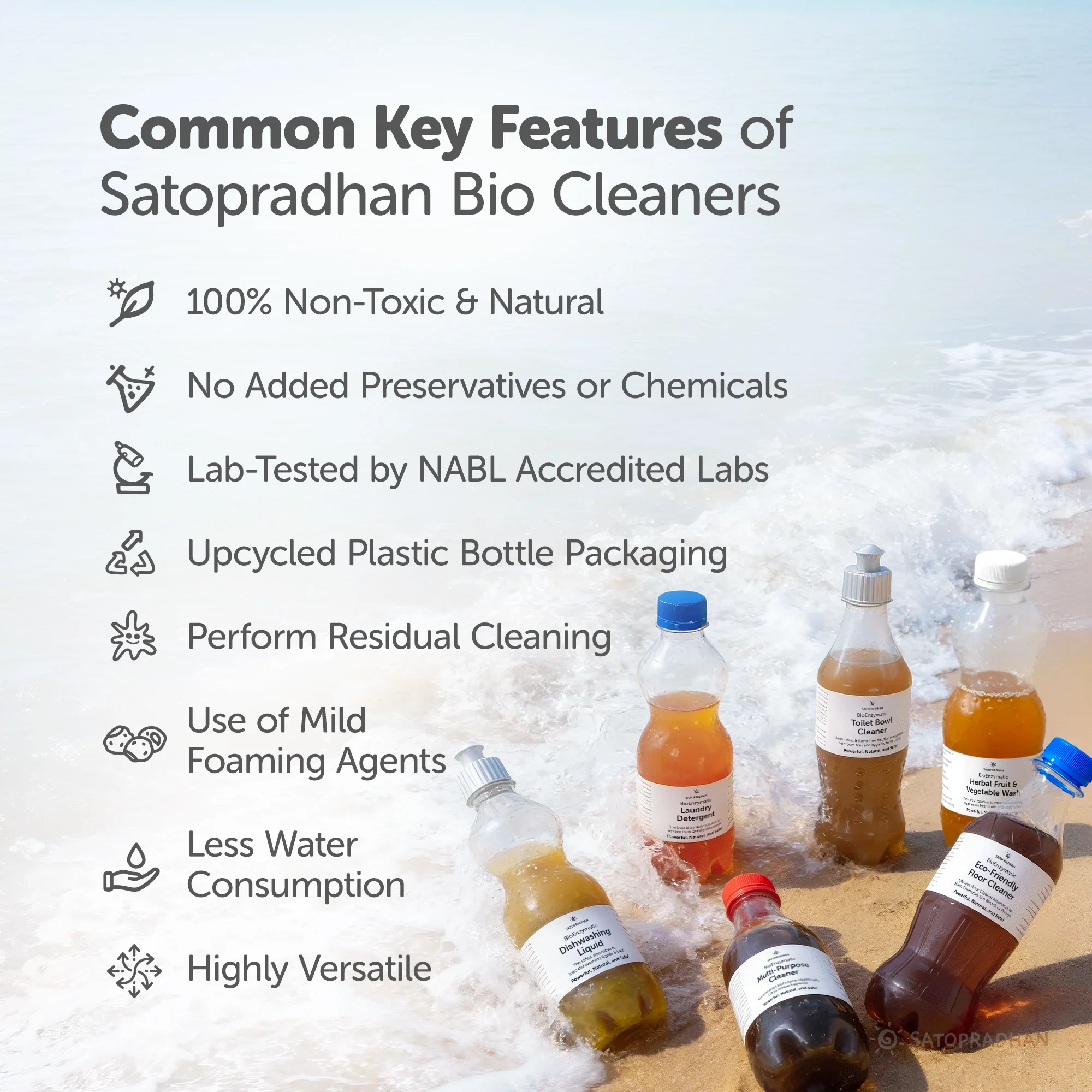 The cleaners are packed in upcycled plastic bottles and recyclable & compostable outer box, making the complete pack an eco-safe resource, helping you, us, and our mother nature. -