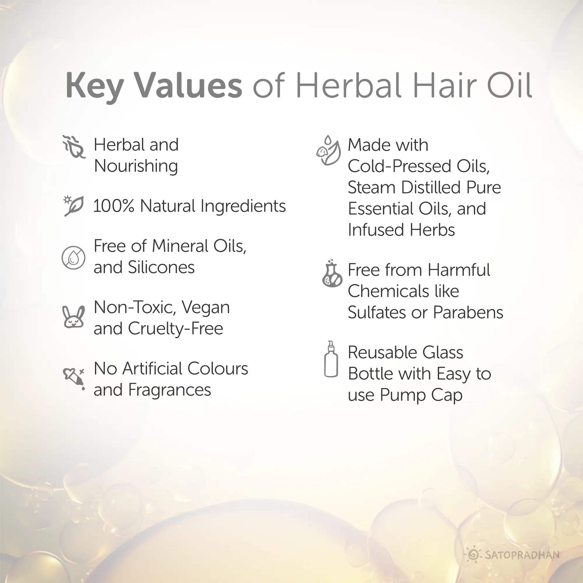 - Apply the oil prior to using our Satopradhan Rosemary Shampoo, as a natural alternative to chemical-based shampoos.